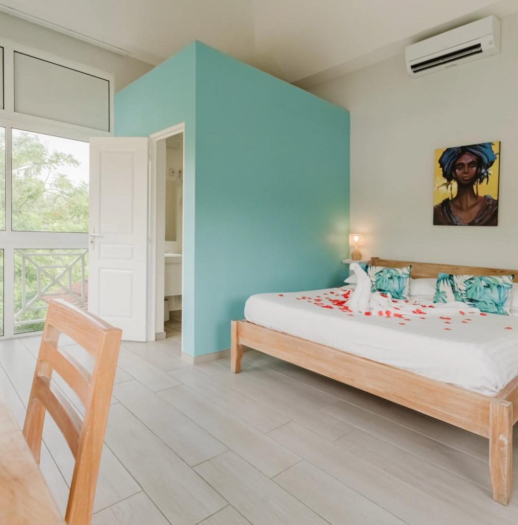 The Frégate Bleue Hotel welcomes you to an idyllic setting with 16 rooms spread over two buildings. Each room is a veritable haven of peace, tastefully decorated and equipped with quality amenities to ensure a pleasant stay. Designed to invite you on a journey, they combine comfort and serenity.